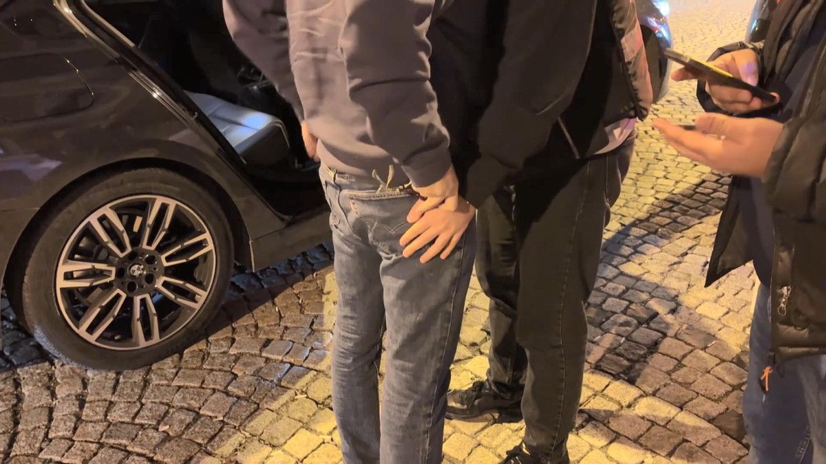 Diğer yandan caddede yüksek sesli müzik açarak ilerleyen sürücünün polis ekiplerine yakalandığı anlar kameraya yansıdı.