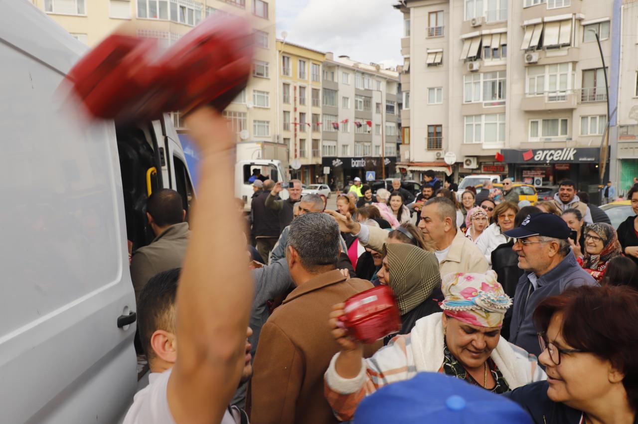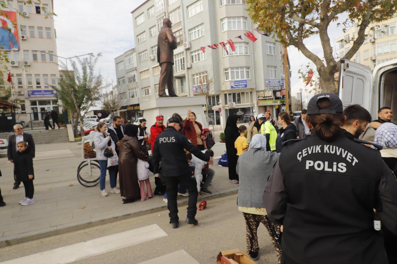 Bir market tarafından kek dağıtımı yapıldı, bu sırada izdiham yaşandı. Vatandaşlar, dağıtılan keklerden almak için birbiriyle yarıştı. Bazı çocuklar, ezilme tehlikesi geçirdi. İzdiham oluşunca keklerin dağıtıldığı araç, zabıta ve polis ekipleri tarafından tören alanından uzaklaştırıldı.